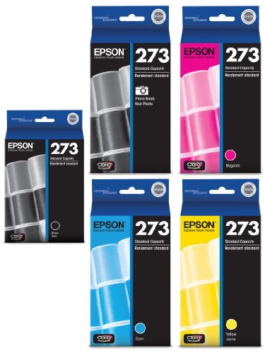 Genuine Epson 273 Color (Black/Photo Black/Cyan/Magenta/Yellow) Ink Cartridge 5-Pack (Includes 1 each of T273020,T273120, T273220,T273320,T273420) for Epson Expression XP-600/800 and Epson Expression Premium XP-610/810 printers
