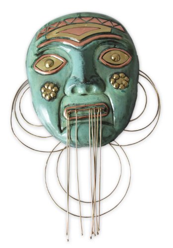 NOVICA Decorative Copper and Bronze Mask, Metallic Green, 'Amazon Chief'