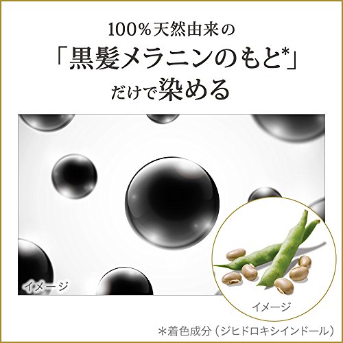 100%天然由来の黒髪メラニンのもと(着色成分:ジヒドロキシインドール)配合の白髪染め(つけかえ専用)です。