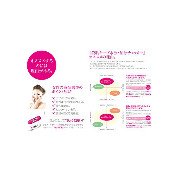 간편하게 피부의 상태를 계측 할 수 있는 컴팩트한 체커(checker)입니다.피부의 상태를 아는 것(일)에 꽈나날의 스킨 케어에 도움이 됩니다.가격도 간단이기 때문에,매우 쓰기에 편리 함이 좋은 제품입니다.