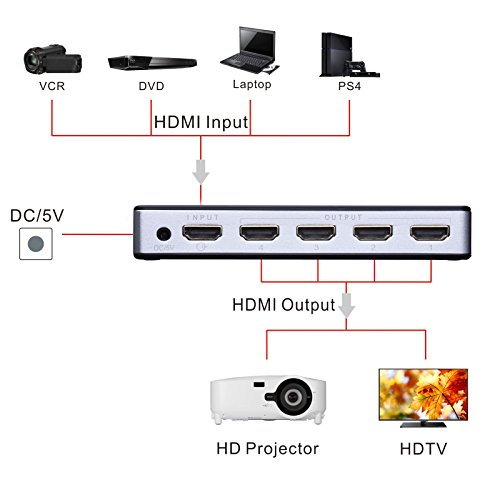 Split 1 HDMI input signal (V1.4b) to 4 HDMI output signals to save $70/month of your basic or premium cable if you have more than 1 TV at home