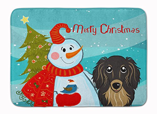 Caroline's Treasures BB1833RUG "Snowman Longhair Black Tan Dachshund" Floor Mat, 19" x 27", Multicolor