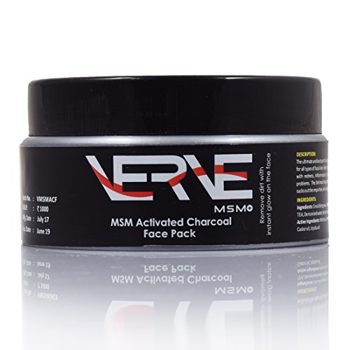 Verve MSM Activated Charcoal Face Pack 100 gm (3.52 oz) (MSM Organic Sulfur Natural Beauty Mineral)