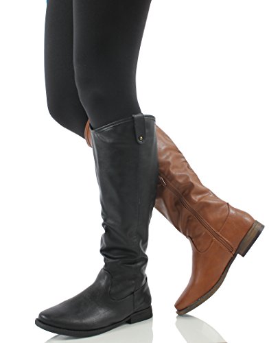 Bamboo Women's Faux Leather Cowboy Western Pull On Tab Knee High Riding Boot