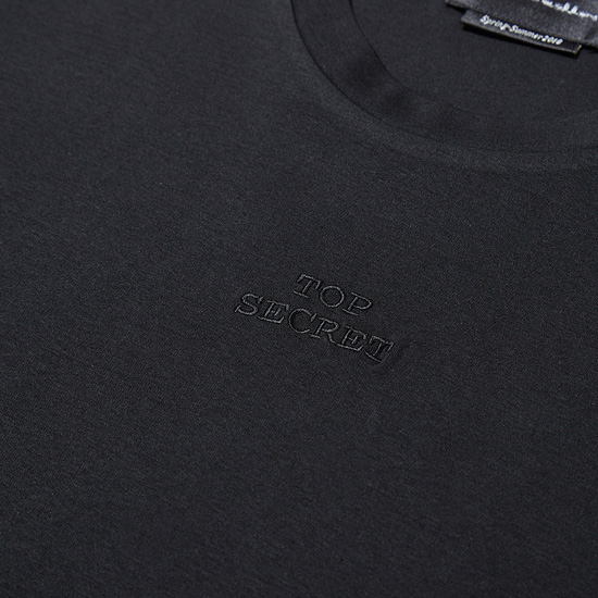 - 깔끔한 블랙 컬러의 TOP SECRET 자수로 감각적인 반팔 티셔츠.