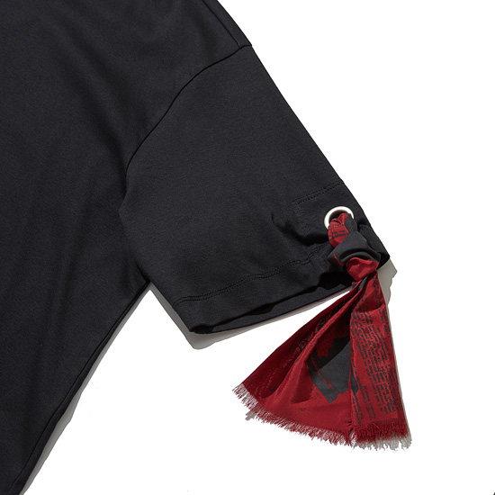 - 슬리브 O링 디테일과 배색 스카프로 유니크한 포인트.