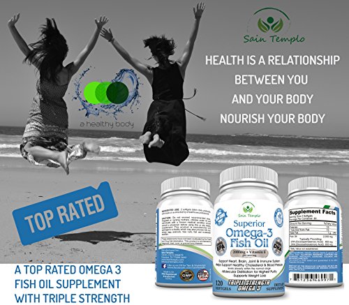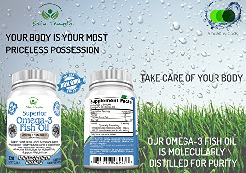 ★OMEGA 3 FATTY ACIDS- 2000mg Of The Best Pro Fish Oil, Beats Any Pills,Liquid,Gummies. COMPARE US TO THE COMPETITION - WHY Sain Templo IS BEST! - Other cheaper brands' capsules could be poisoning you. Other companies' Fish Oil often contains Mercury, toxins, and poisons from the fish or ocean. They also leave out important DHA Omega-3 6 9s, failing to protect your brain. Sain Templo contains the highest amount and potency per serving + Vitamin E. We also have 120 CAPSULES per bottle!