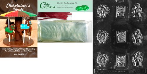 Cybrtrayd Assorted with Angel Chocolate Mold with Chocolatier's Bundle of 25 Cello Bags, 25 Red Twist Ties and Chocolatier's Guide